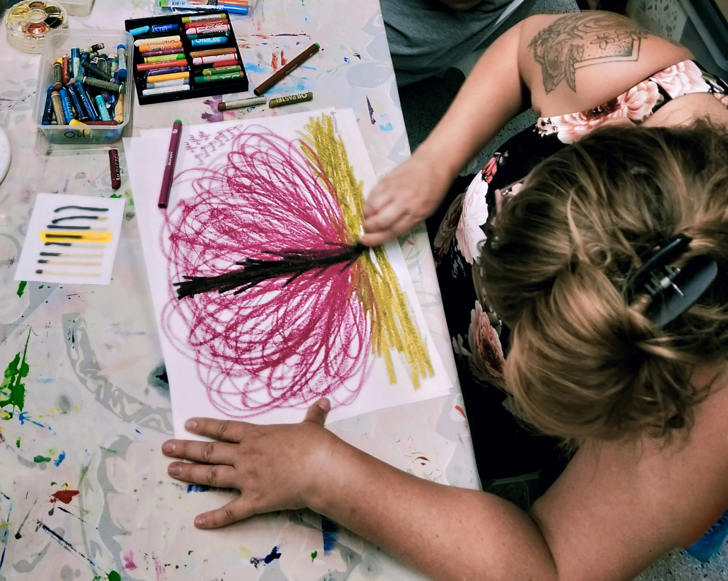 People often ask this important question and are quick to point out that they ‘can’t draw’. Rest assured, no artistic skills whatsoever are necessary to engage with art therapy. The initial invitation is often, ‘to represent the matter at hand through shapes, colours, lines or any other kind of mark-making as it feels best for you’. This does the job perfectly. It’s not about producing magnificent pictures for display. It’s about the process of creating and the internal attunement gained along the way through deeply connecting to other faculties of knowing.